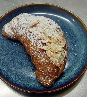 Croissant with almond filling and flaked almonds