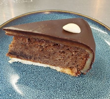 Almond meal and chocolate cake, with coffee and Tia Maria