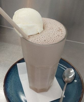 Blended ice cream, milk and chocolate powder and extra vanilla ice cream