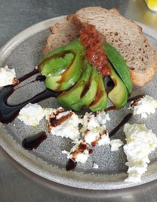 Avocado on rye, feta, spicey tomato relish and caramelised balsamic vinegar