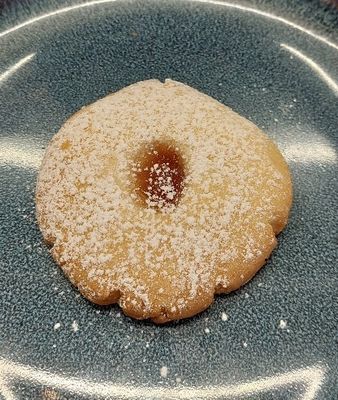 Shortbread biscuit with a raspberry jam drop