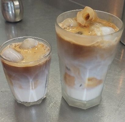 Coffee, milk, ice cubes