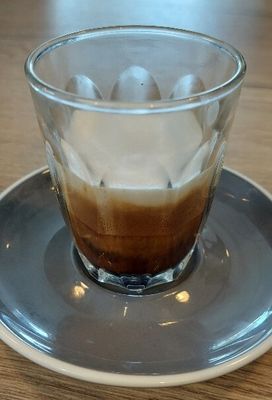 espresso, stained with frothy milk