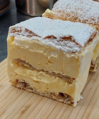 Flakey pastry layered with a light vanilla cream filling