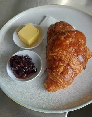 Croissant with jam and butter
